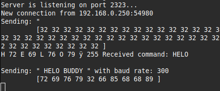 The server received the HELO with a terminating 0xFF byte what indicates the client has stopped its communication and is waiting for an answer.